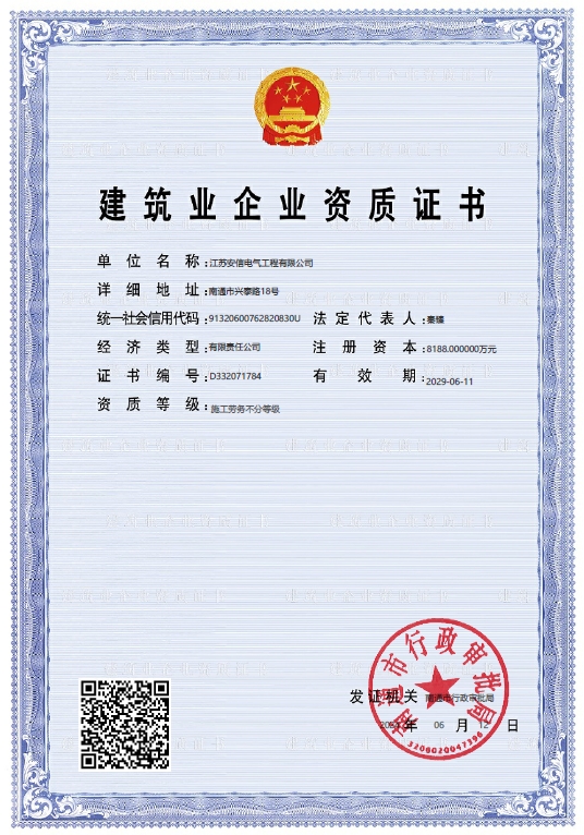 承裝二級(jí)、承修二級(jí)、承試二級(jí),電力工程施工總承包二級(jí),輸變電工程專業(yè)承包二級(jí),建筑工程施工總承包二級(jí),建筑機(jī)電安裝專業(yè)承包二級(jí),地基基礎(chǔ)專業(yè)承包二級(jí)